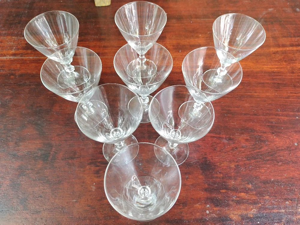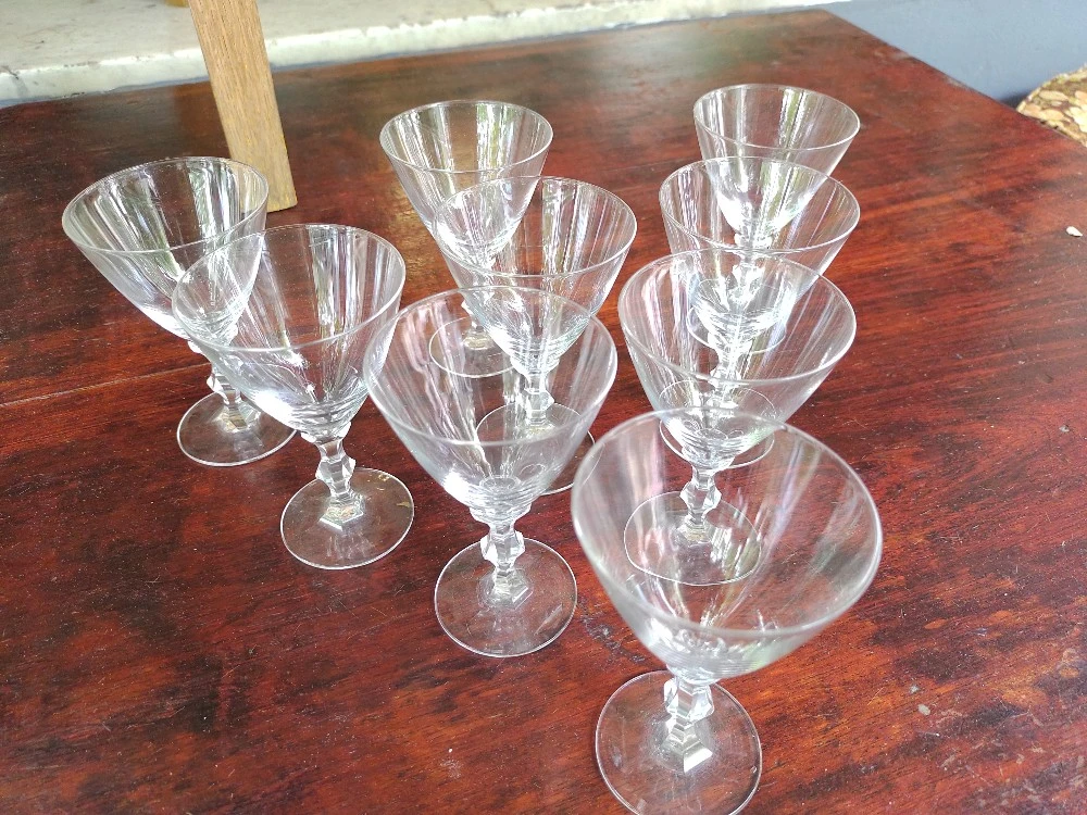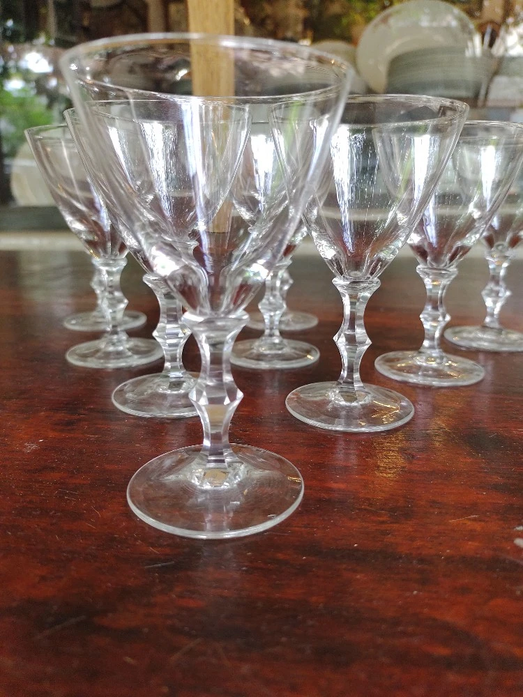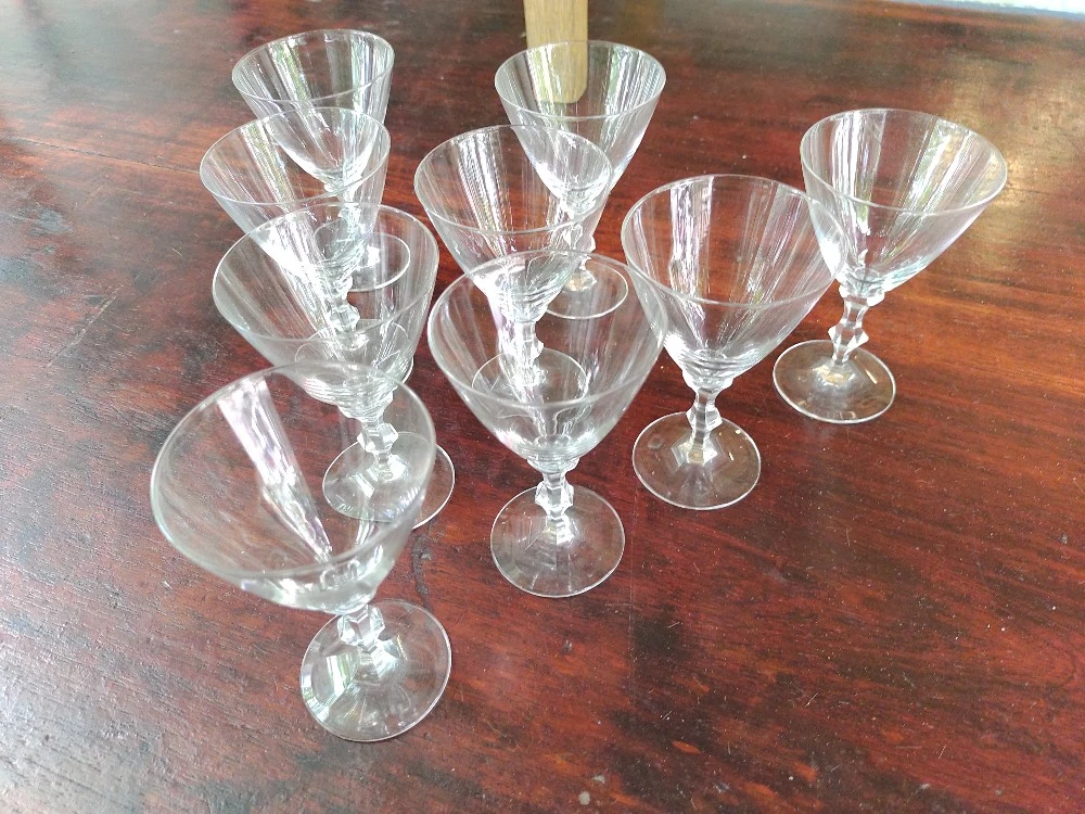 Hermoso Juego 9 Copas Cristal Tallo Trabajado. Buen Estado de Conservacion. MEDIDAS: 10,5cm Alt x 6,5cm Diam Boca. Envíos a Todo el País. SOMOS MAITAGALLI ANTIGUEDADES ROSARIO.