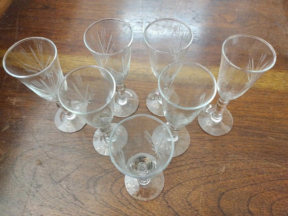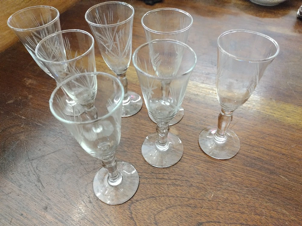 Juego 7 Copas Talladas. Buen Estado de Conservacion. MEDIDAS: 13cm Alt x 5cm Diam Boca. Envíos a Todo el País. SOMOS MAITAGALLI ANTIGUEDADES ROSARIO.