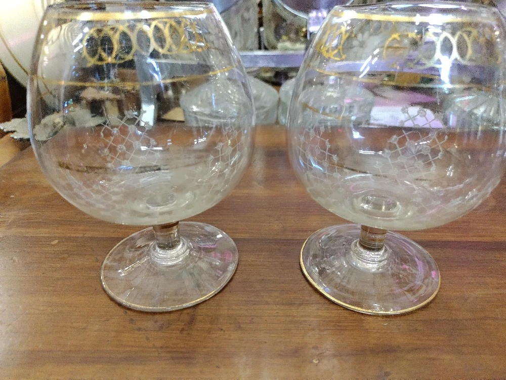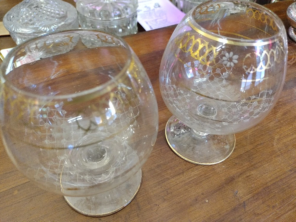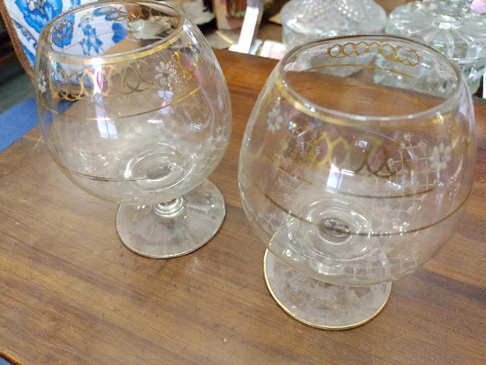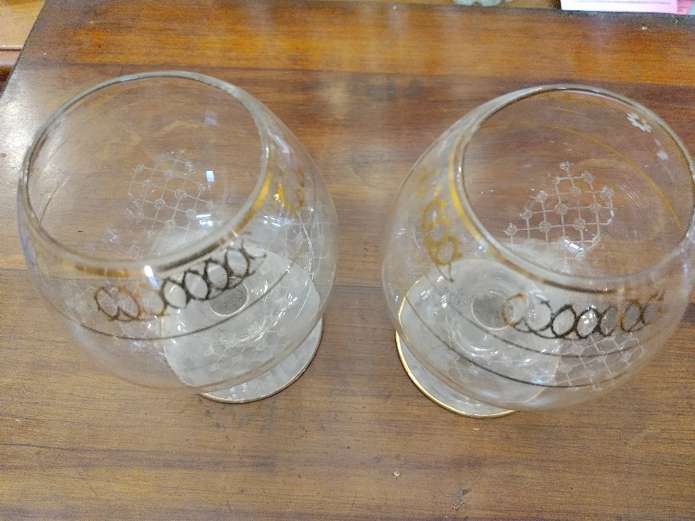 Par de Copas Grabado Dorado. Buen Estado General. MEDIDAS: 13,5cm Alt x 6cm Diam Boca. Envíos a Todo el País. SOMOS MAITAGALLI ANTIGUEDADES ROSARIO.
